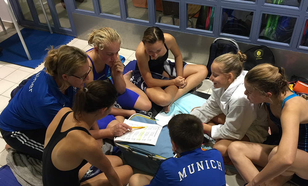 alle vier Schwimmtechniken mit Wenden und Starts.